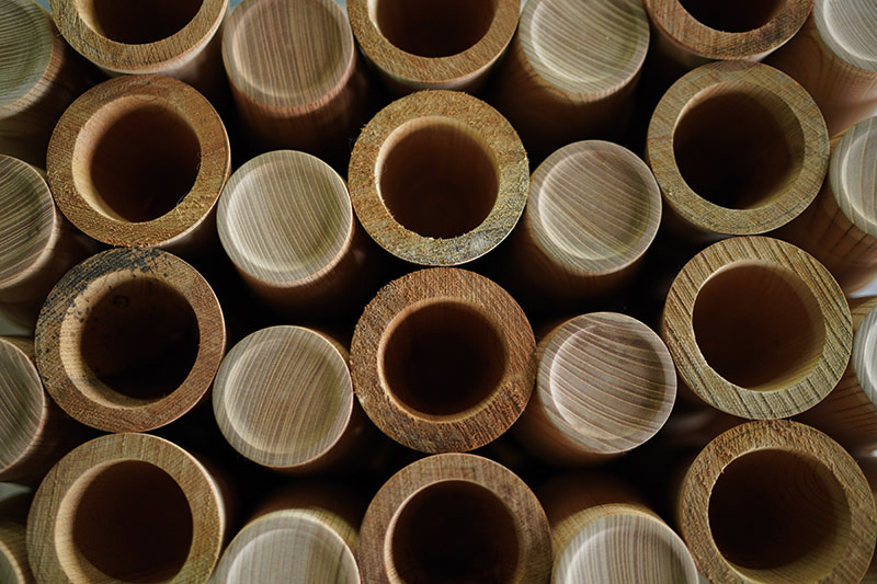 In this drying process, we control the temperature and humidity depending on the season, weather, of course the condition of wood. By setting the most suitable temperature and humidity for each wood material based on our experience and knowledge of over many years, we can finish the wood in the best condition for vessel. This technology enables to producee fine and delicate form of wood which is also difficult to deform or bend during using it.