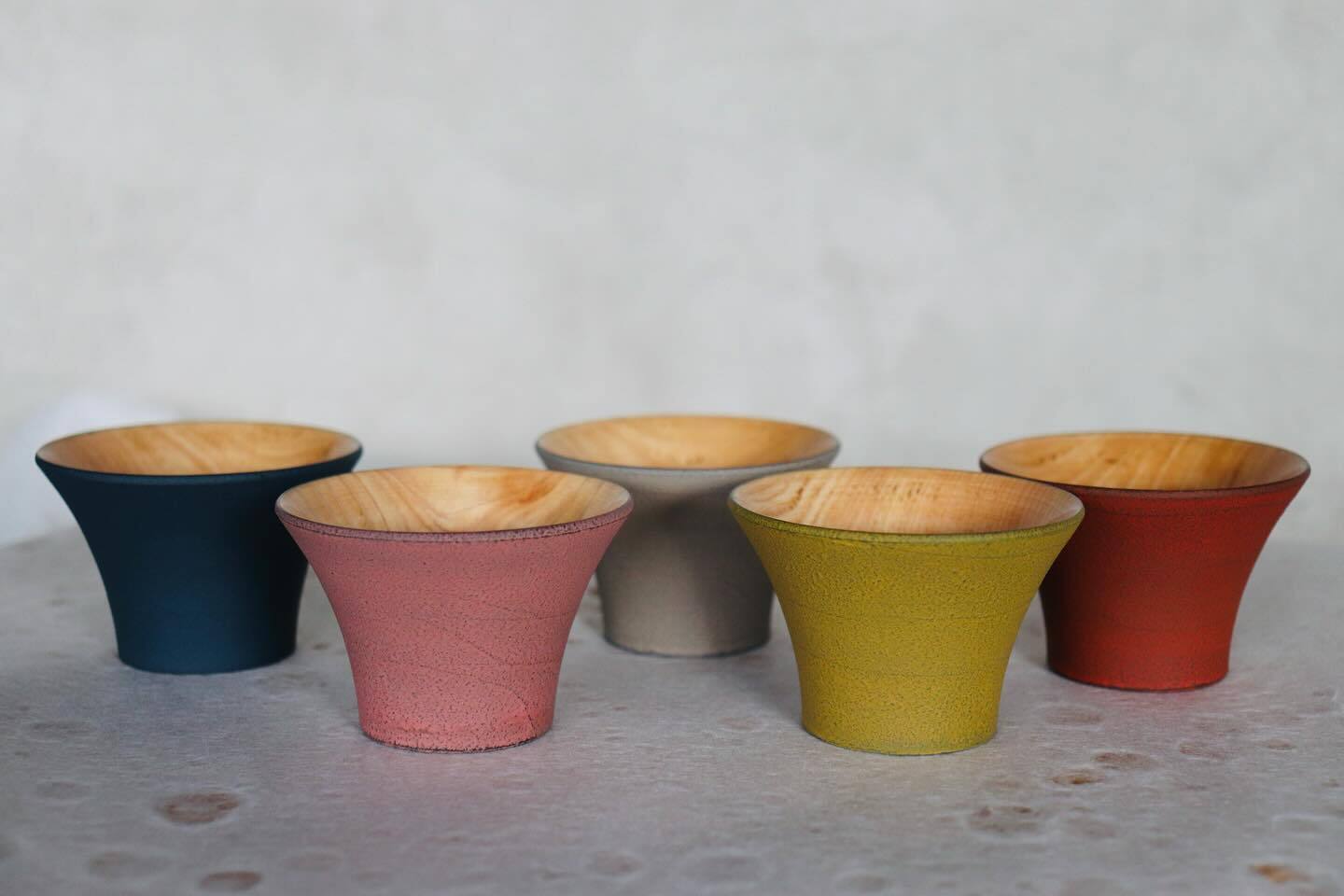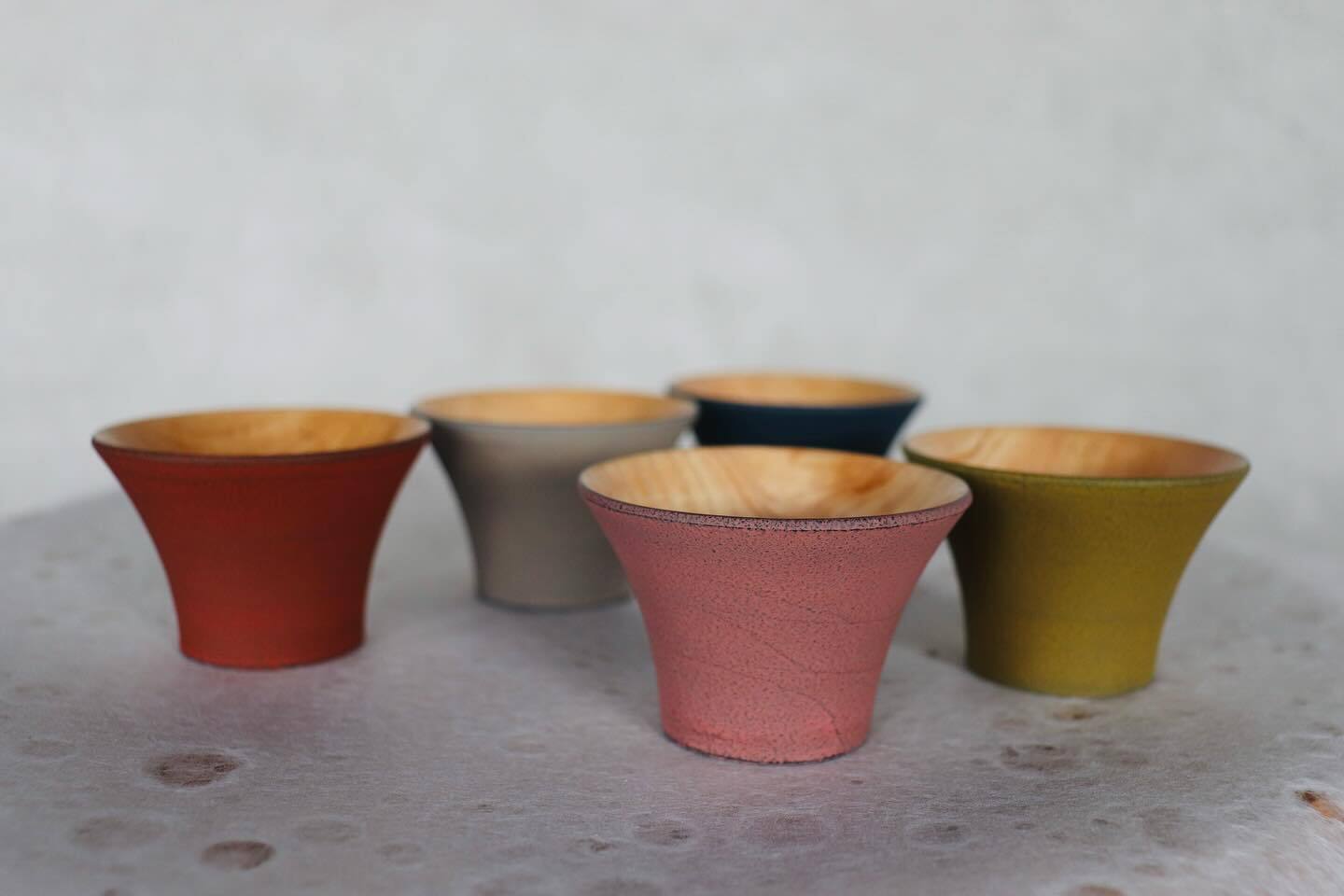 さび塗り富士はこの秋の新作なのですが、すでにイベントや工場併設ギャラリーで売れ筋となっています。外側は錆漆(さびうるし)、内側はガラス塗装を施しました。小さなおちょこの中で、日本の伝統技術である漆塗りと、日本の木の美しい木目を同時に感じられる器です。