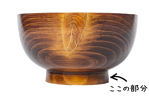 お椀の底の部分、ぐるっとついた輪っかを高台(こうだい)といいます。お椀の足の部分みたいなものですね。