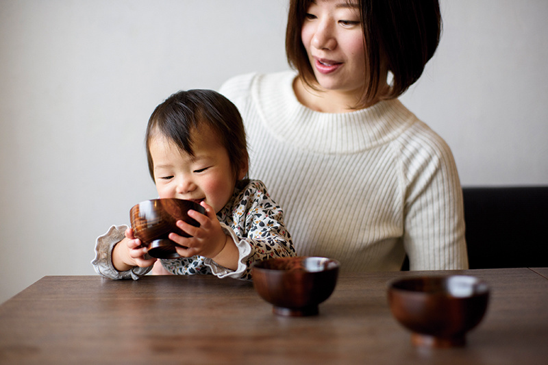 The wood's warmth can cultivate the ability of cherishing things. You can use Mebuki safely for your children as it is made with natural wood and finished with natural lacquer, Urushi. You might think it is a bit early to make them use those high-quality creations but children can understand the valuable things in their lives. Mebuki could help to develop those senses. If you do the maintenance carefully, wooden product can live more than 20 to 30 years. A product that can grow up together with your children sounds nice, doesn’t it?