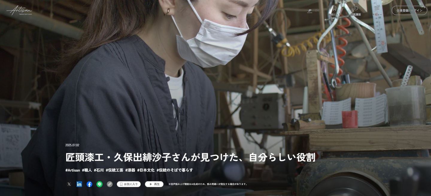 ZOZO NEXTが手掛けるWEBメディア「Fashion Tech News」におけるプロジェクト「Artisan(アルチザン)」。この度、『匠頭漆工・久保出緋沙子さんが見つけた、自分らしい役割』と題して、匠頭漆工の3代目の嫁久保出緋沙子にフォーカスした記事が掲載されましたのでご報告させていただきます。